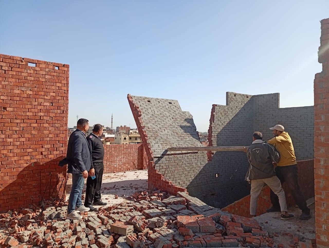 إزالة حوائط دور ثاني علوي مخالف بقريه دنجواي