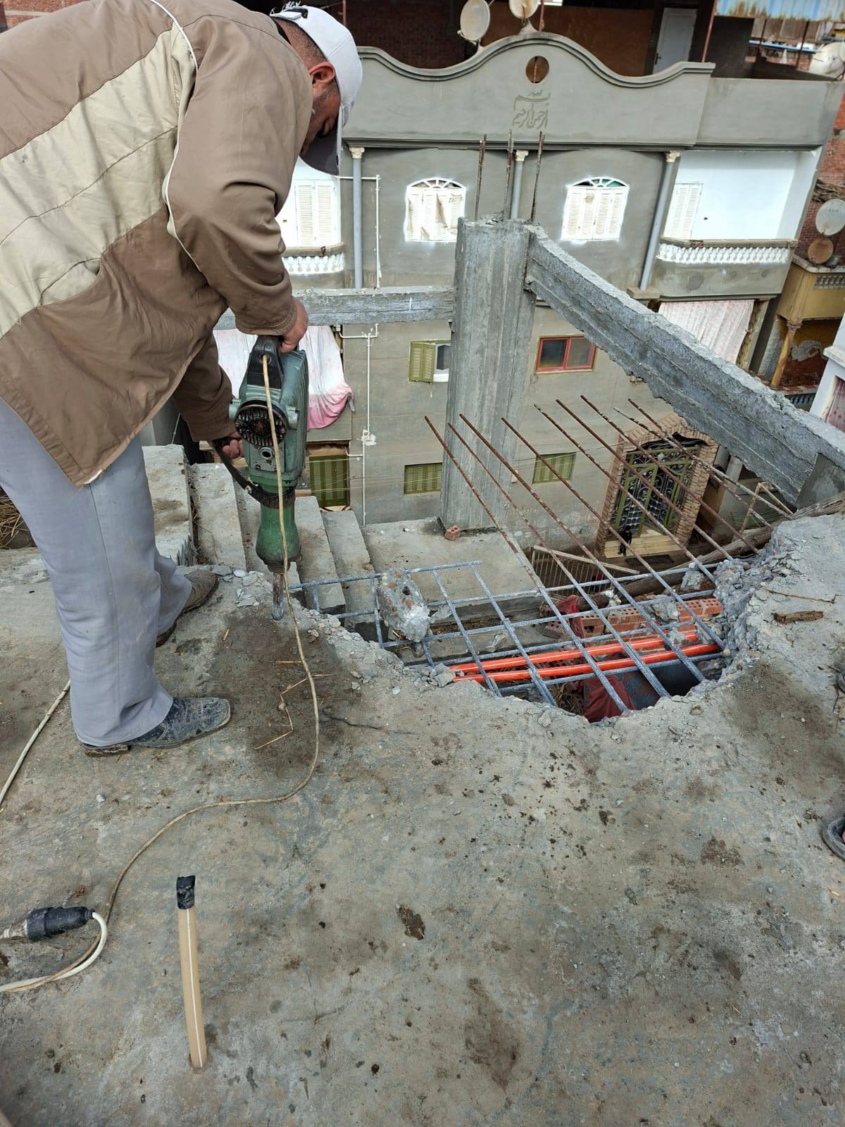 تنفيذ إزالة سقف مخالف بقريه دنجواي ضمن أعمال الموجه 28 لازاله التعديات والمخالفات البنائيه