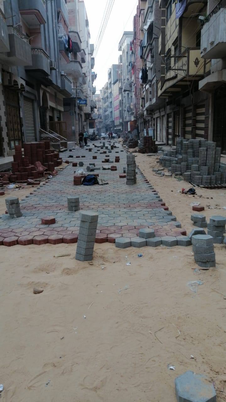 الإنتهاء من أعمال الرصف وتركيب بلاطات الانترلوك بشارع أحمد شاكر ضمن أعمال الخطة الاستثمارية