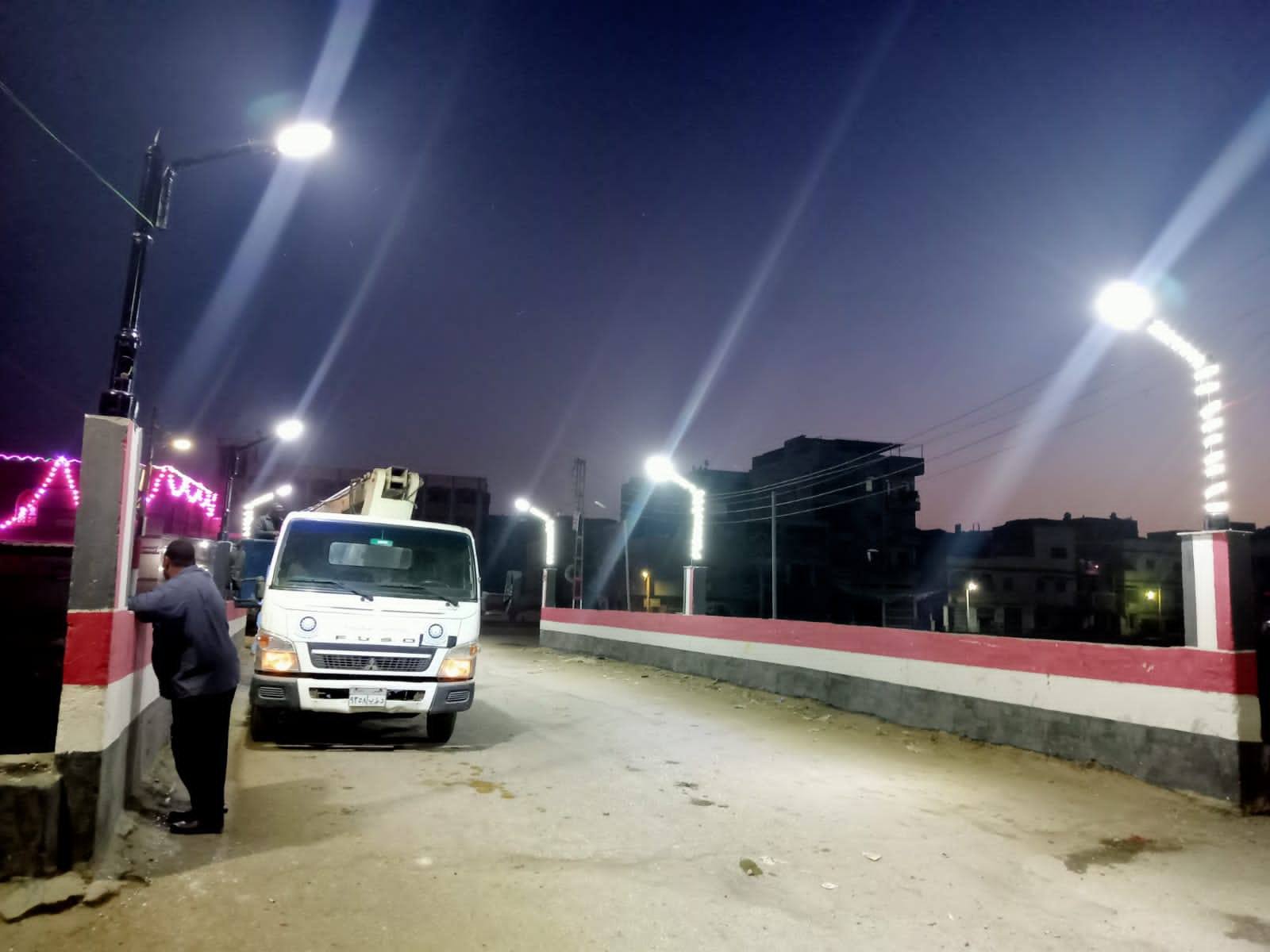 رفع كفاءة أعمدة الإنارة العامه وتركيب الكشافات بمدخل قريه بساط كريم الدين والشوارع الرئيسية بالقرية