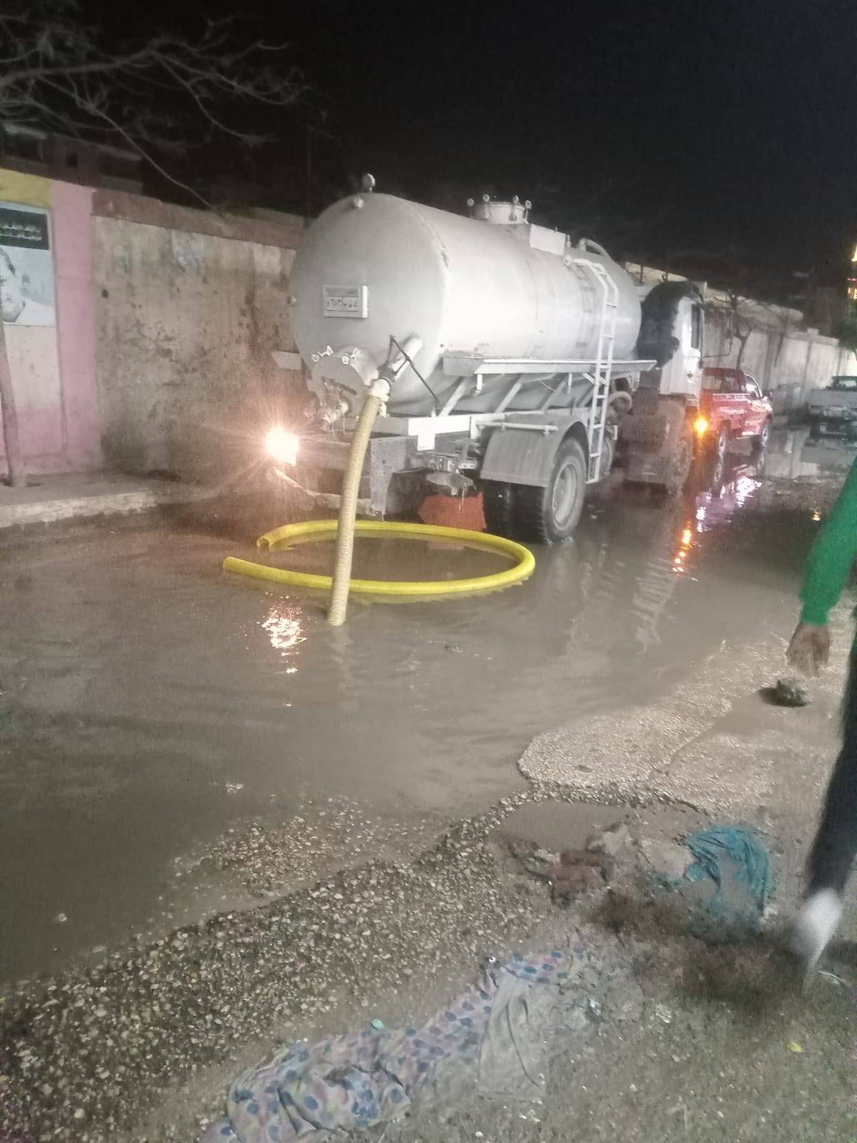 الآن وفي تمام الساعة الثامنة مساءا إستكمال سحب تراكمات مياه الصرف الصحي بشارع ٢٣ يوليو بمعرفة معدات الحملة الميكانيكية برئاسة المركز