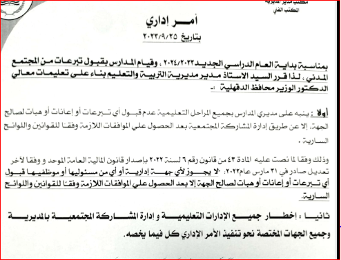 أمر إدارى بمناسبة بداية العام الدراسى الجديد