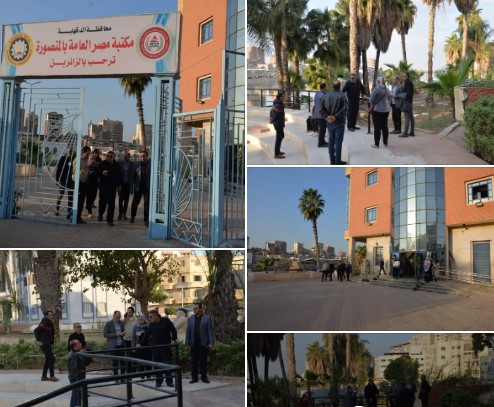 تفقد اللواء طارق مرزوق محافظ الدقهلية مساء اليوم محيط مكتبة مصر العامة والمسرح الروماني للوقوف على مستوى النظافة وحسن تقديم الخدمات المطلوبة للمترددين على المكتبة .