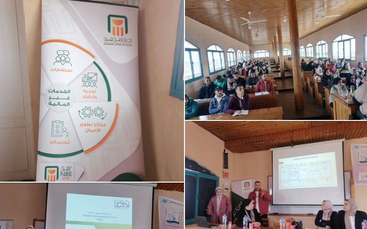 هذا ومن الجدير بالذكر ان ورش العمل التى تم تنفيذها شارك فيها الاستاذة اميرة الشربينى والاستاذه نرمين الشيخ محاضر من مركز تطوير اعمال البنك الاهلى المصرى.