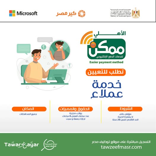 فرصة للتعيين بشركة الأهلى ممكن لخدمات الدفع الالكترونى