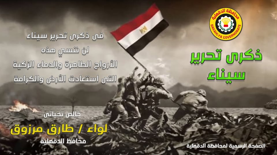 محافظ الدقهلية يهنئ أبناء المحافظة بالذكرى 43 لتحرير سيناء