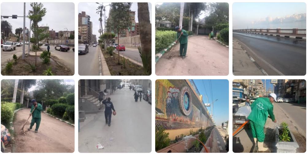 هذا إلى جانب ري الحدائق والمتنزهات والجزر الوسطى بكافه الشوارع الرئيسية بالمدينة، وزراعة وتقليم الاشجار بالجزر الوسطى بشارع عبد السلام عارف، وكنس الأتربة من الشوراع بالاستعانة بعدد 4 شركات للنظافة، لكنس الشوراع وجمع ونقل المخلفات، ويتم تقديم الخدمات على ثلاث ورديات على مدار 24 ساعة، بالإضافة إلى تشغيل المكنسيات في ساعات الصباح الأولى، بشارع الجيش والمشاية والجمهورية وقناة السويس، وصلاح سالم، والنوادي، لرفع الأتربة