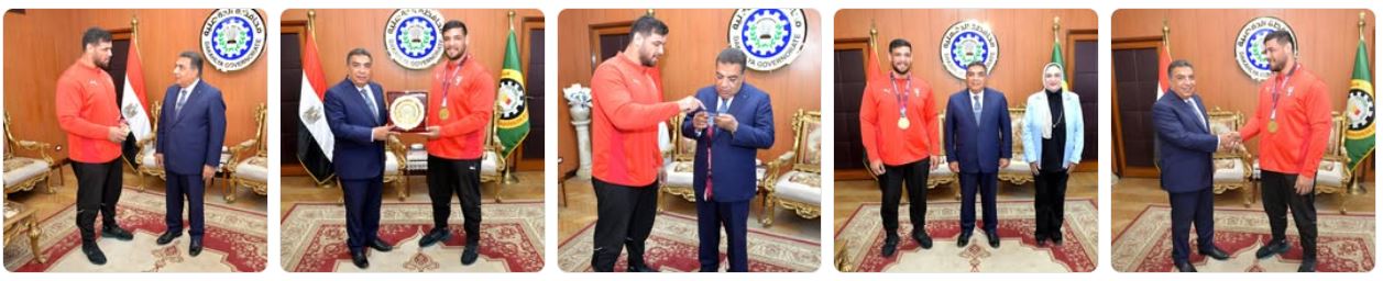 -محافظ الدقهلية يكرم البطل العالمي عبد اللطيف منيع بعد حصوله على الميدالية الذهبية في بطولة أفريقيا للمصارعة الرومانية بالمغرب 2025.