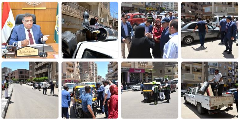 محافظه الدقهليه يتابع أعمال الحمله المكبره لمصادرة مكبرات الصوت بالتوك توك والدراجات البخاريه بمدينة المنصوره والتي ينفذها حي شرق بالتعاون مع إدارة المرور